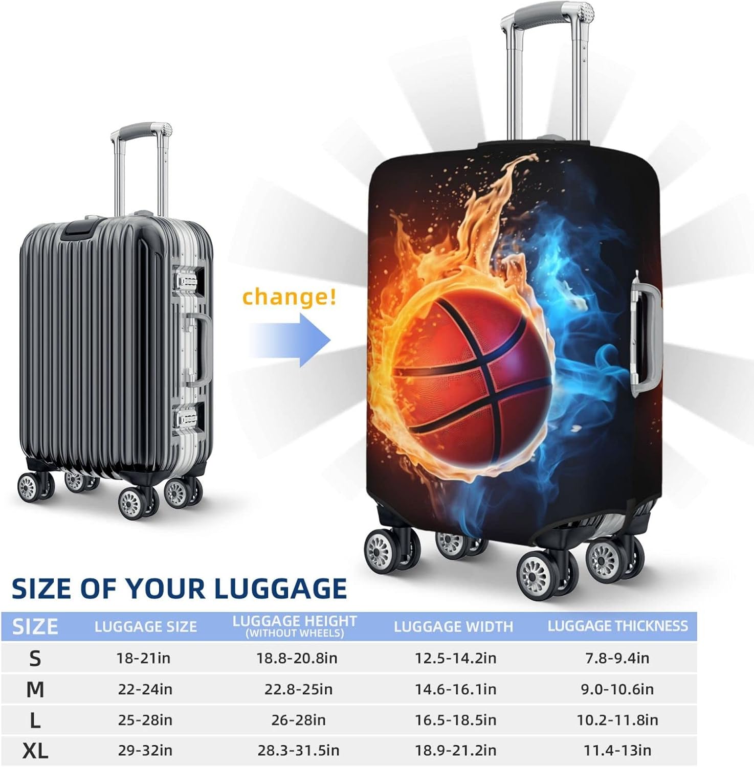 • Four Sizes Available(No Suitcase): S (Suitable for 18″-21″ luggage); M (Suitable for 22″-24″ luggage); L (Suitable for 25″-28″ luggage); XL (Suitable for 29″-32″ luggage); Luggage cover Only, No luggage.